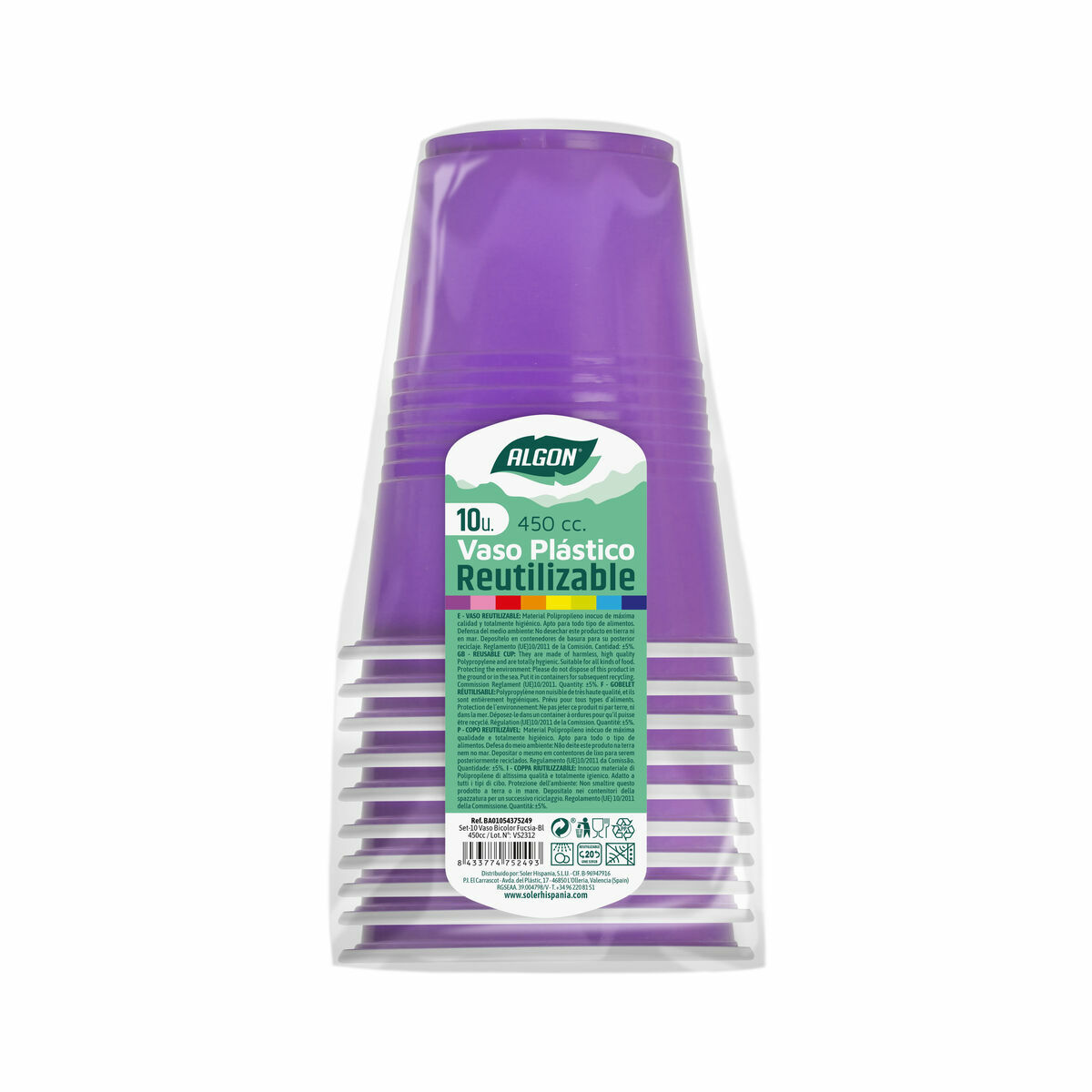 Set of reusable glasses Algon Fuchsia 48 Units 450 ml (10 Pieces) at the best price.